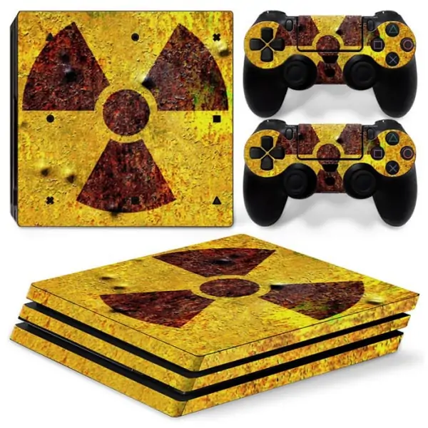 Meget flot PS4 Pro skin med et skræmmende og også spændende motiv -Â Radioactive Warning, prydende for- og bagsiden samt siderne på din PlayStation 4 Pro.