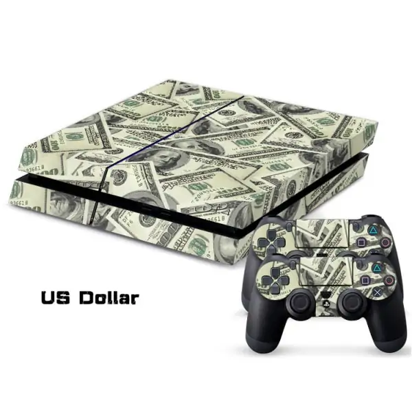 Rigtig flot PS4 sticker med US Dollars pengesedler prydende for- og bagsiden samt siderne på din PlayStation 4.