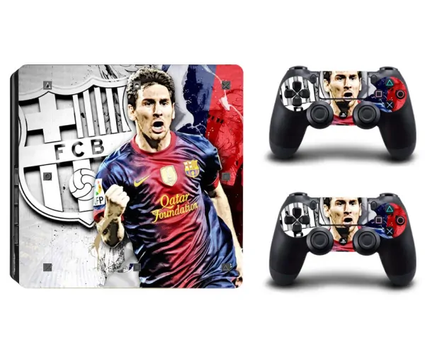 Rigtig flot PS4 Slim skin med FC Barcelonas stjernespiller Lionel Messi prydende for- og bagsiden samt siderne på din PlayStation 4 Slim.
