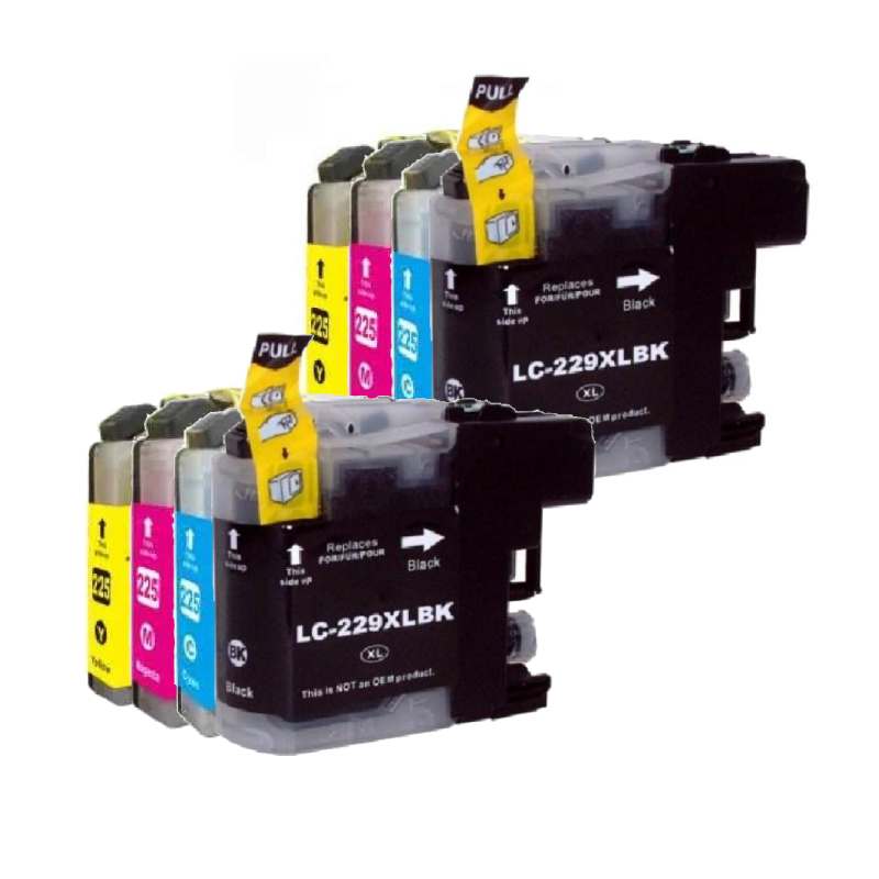 Rabatpakke – Brother LC229XL / 225XL 2 x 4 farver BK-C-M-Y Kompatibel LC229XL 9.600 sider passer til: Brother MFC J 5320 | Brother MFC J 5620 | Brother MFC J 5625 | Brother MFC J 5720