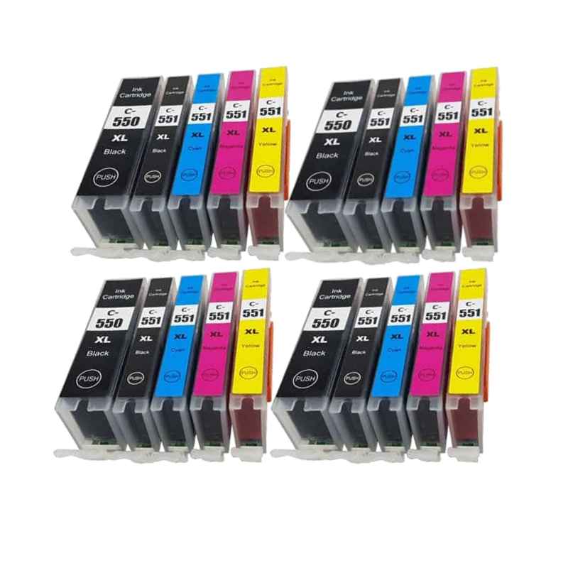 Rabatpakke – Canon PGI-550XL / CLI-551XL 5 farver 4 x 5 Kompatibel PGI-550XL 308 ml passer til: Canon Pixma ip 7250 | Canon Pixma ip 8700 | Canon Pixma ip 8750 | Canon Pixma ix 6800 | Canon Pixma ix 6850 | Canon Pixma mg 5400 | Canon Pixma mg 5450 | Canon