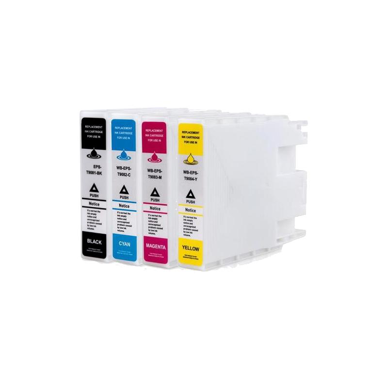 Rabatpakke – Epson T9081-T9084 BK-C-M-Y blækpatron 4 stk kompatibel C13T908140 17.000 sider passer til: Epson WorkForce Pro WF 6000 | Epson WorkForce Pro WF 6090 | Epson WorkForce Pro WF 6590