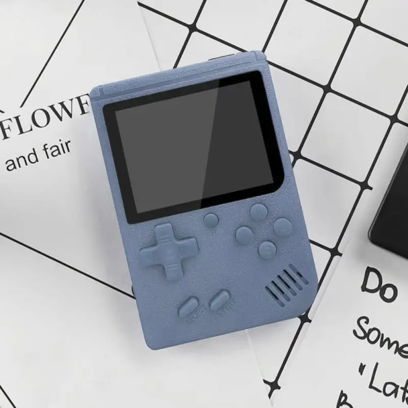 Retro håndholdt spillekonsol i grå, med 400 klassiske spil.