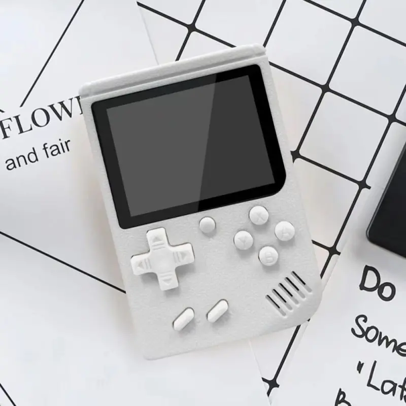 Retro håndholdt spillekonsol i hvid, med 400 klassiske spil.