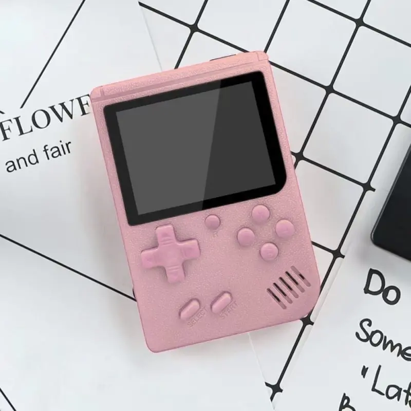 Retro håndholdt spillekonsol i lyserød, med 400 klassiske spil.