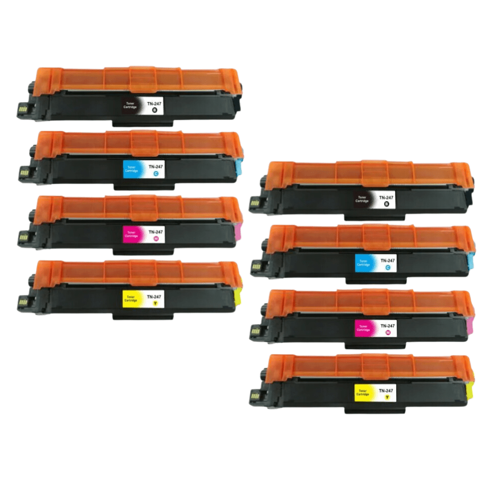2 stk. TN247 BK, kompatible toner 2 stk. TN247 Y, kompatible toner 2 stk. TN247 M, kompatible toner 2 stk. TN247 C, kompatible toner