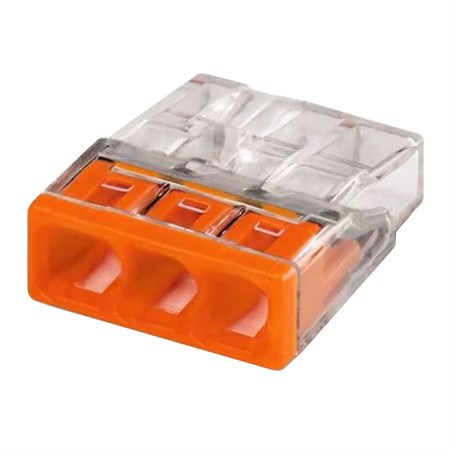 Fjeder muffer der sætter turbo på samling af faste kobber tråde fra 0,5-2,5mm2, ingen skruer der kan løsne sig. Samtidig sparer den plads i dåsen.Â