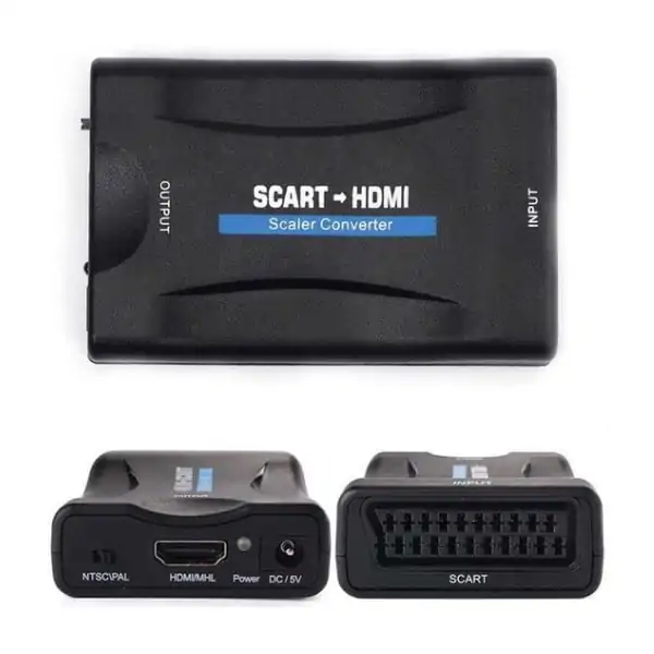Forbind et ældre apparat (som har Scart) til et nyere TV, HDMI-skærm, projektor eller andet (som kun har HDMI) med denne adapter.