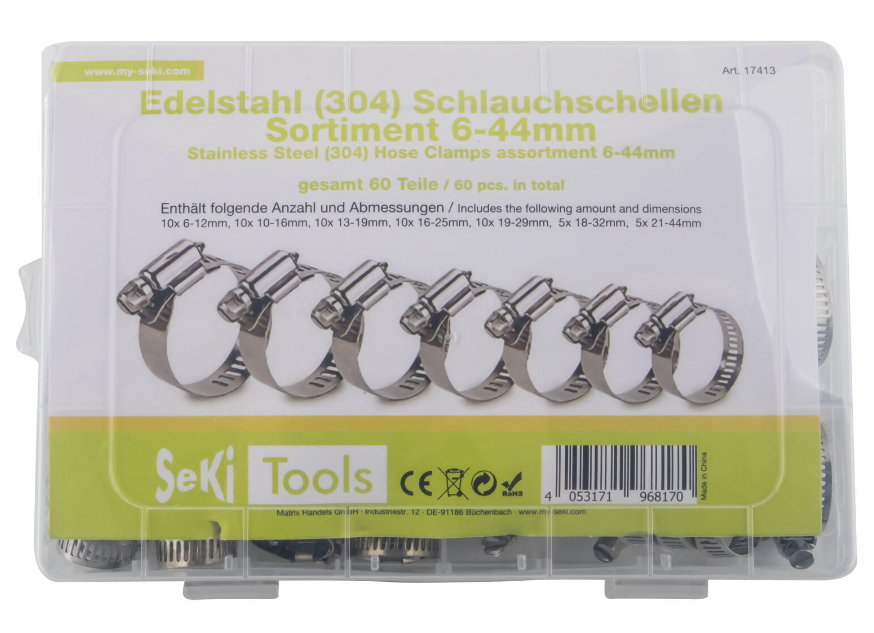 Seki Spændebånd, Rustfrit Stål (304), Sortiment, 60 stk.Â