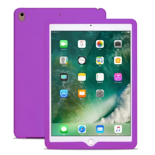 Rigtig flot og meget praktisk iPad silikone cover i lilla, der passer til alle iPad 9,7″ modeller.