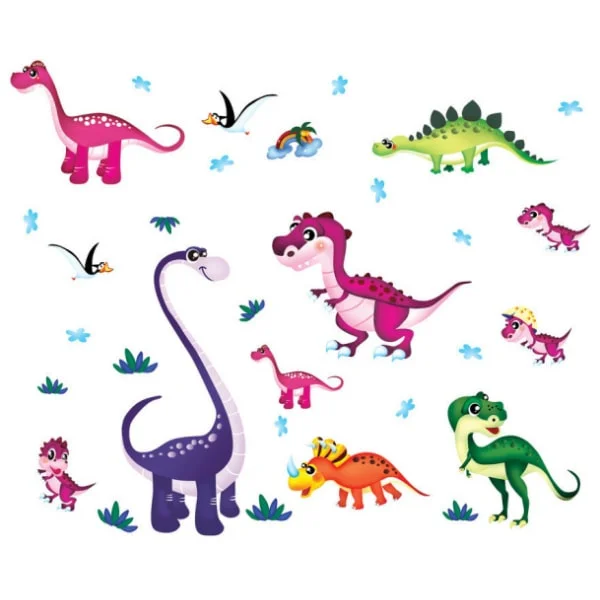 Rigtig sød dinosaurus wallsticker med nuttede baby dinoer – særdeles velegnet til mindre børn.