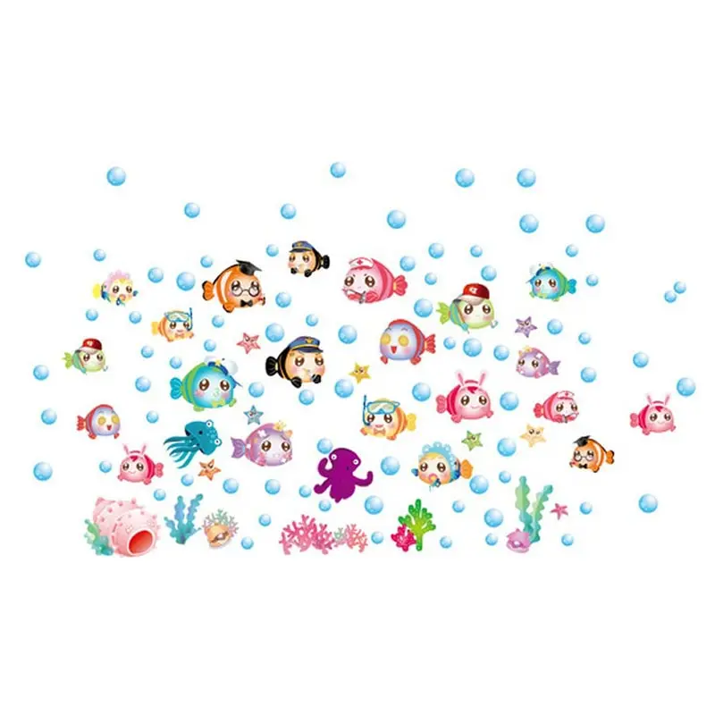 Sjov, farverig og sød wallsticker med masser af farverige fisk og bobler, så man rigtig får opfattelsen af at være i havet eller i et akvarium.