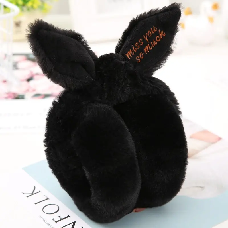Søde og meget bløde sammenklappelige plys ørevarmere i sort.