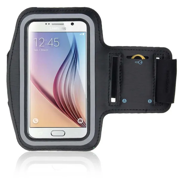 Sort sportsarmbånd / Løbearmbånd til Samsung Galaxy S3, S4, S5, S6, S6 Edge & S7. Universal str.