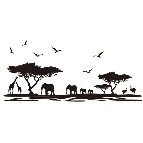 Rigtig flot og dekorativ wallsticker med dyrene på den Afrikanske Savanne.