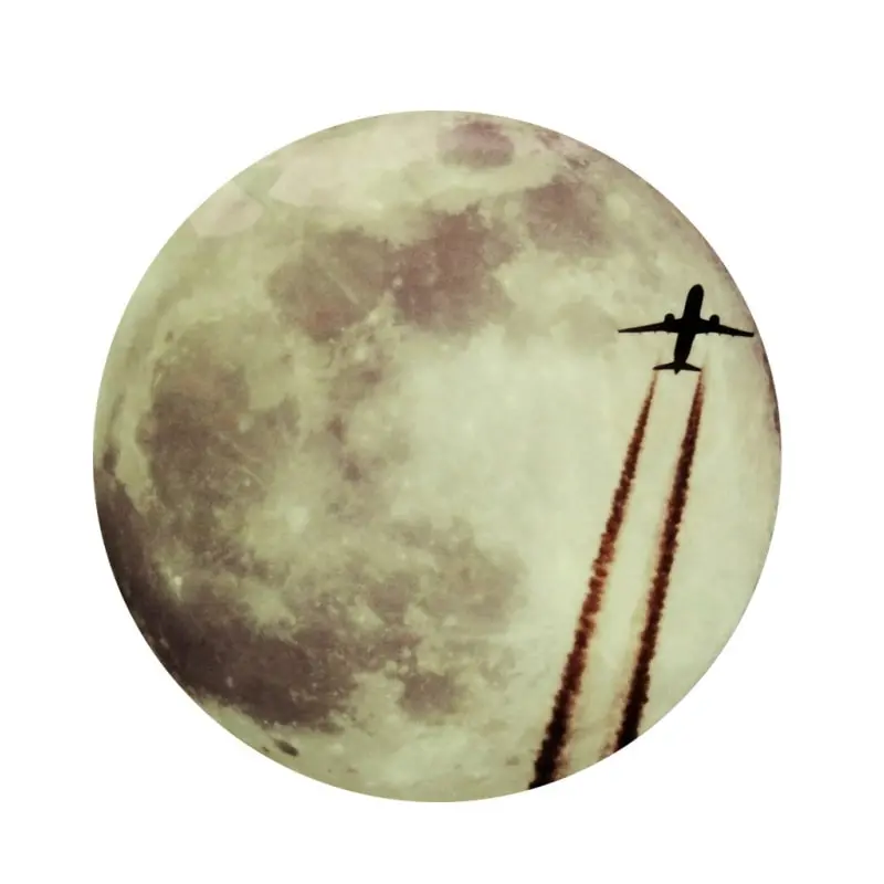 Stor selvlysende måne wallsticker. 30 cm. Flyvemaskine.