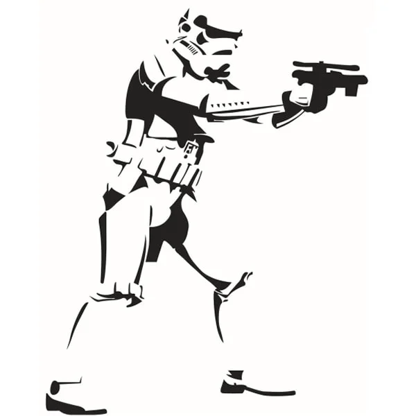Flot og dekorativ Stormtrooper wallsticker med en sej Stormtrooper med våbnet trukket.