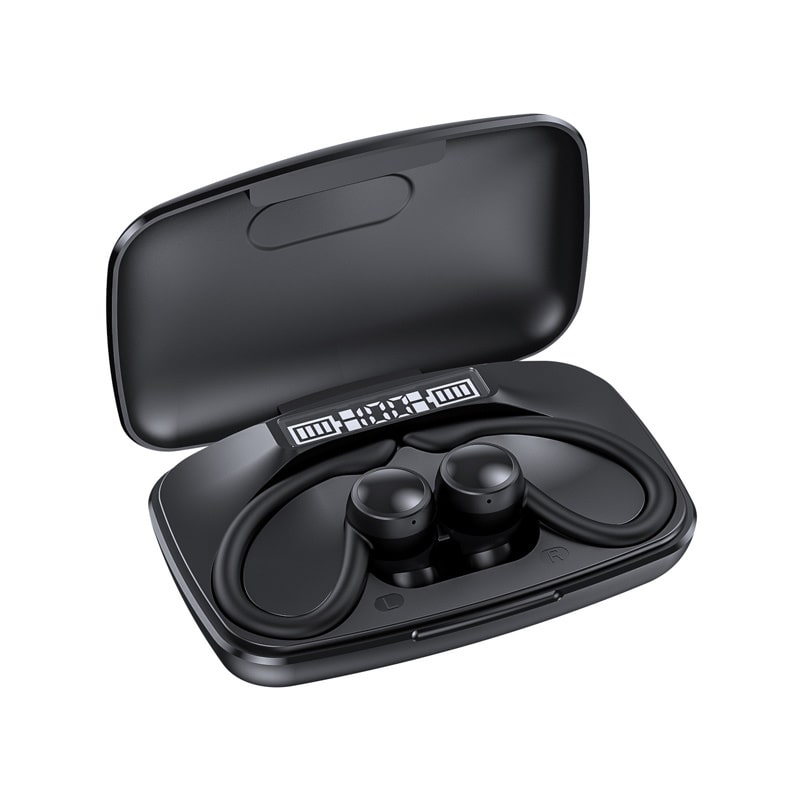 Fede True Wireless (TWS) Bluetooth T82 høretelefoner med ørekrog og smart opladningsetui med display, Touch kontrol mm: