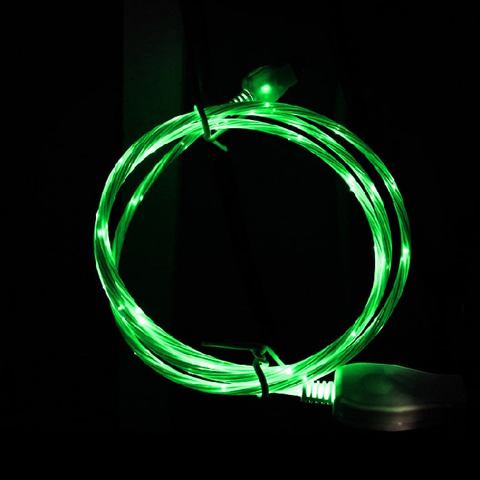 USB-A til USB-C Kabel med LED Lys på 1 meter i grøn.