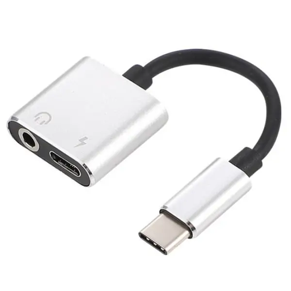 USB-CÂ earphone adapter. Opladning og høretelefon 3.5mm mini-jack adapter.