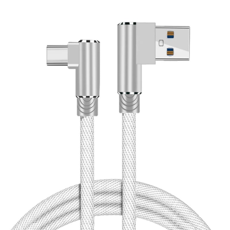 USB-C til USB-A Kabel – Flettet, Begge Stik Vinklet 90°, 3m (Hvid) –