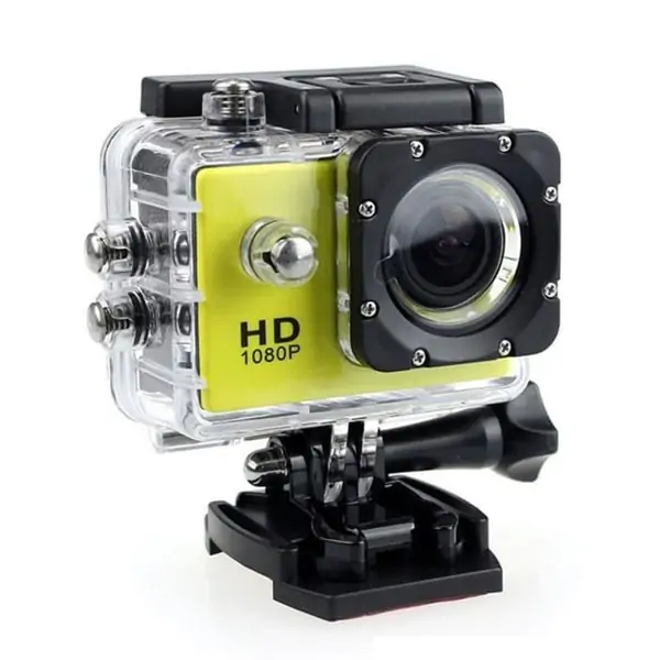Sejt Gult Vandtæt Sports Kamera. Fedt aktivitets kamera med tilbehør. 1080p / 720p.