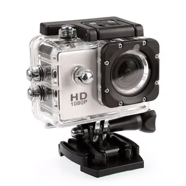 Fedt hvidt Vandtæt Sports Kamera. Fedt aktivitets kamera med tilbehør. 1080p / 720p.