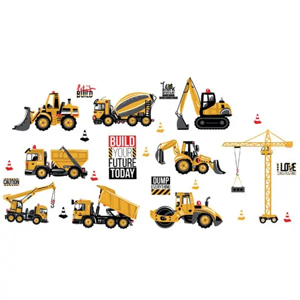 Den helt rigtige wallsticker til børneværelset, hvis man er fan af Byggemand Bob eller blot elsker store lastbiler, gravkøer, kraner o.lign.